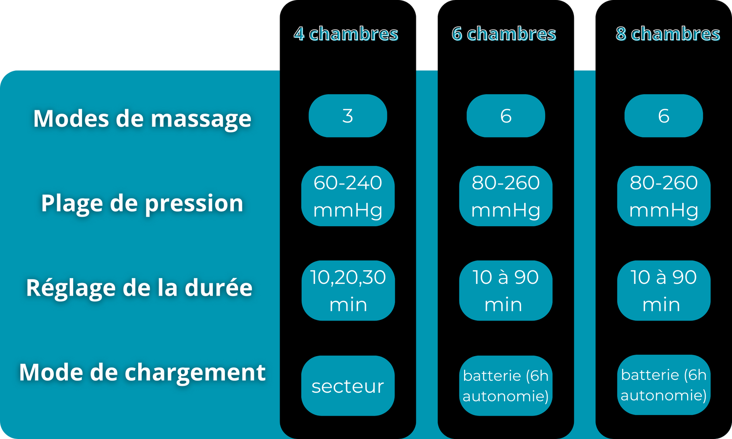 Absolument ! Notre modèle de Pressolegs Gainful intègre une batterie intégrée de 5200mAh qui offre une grande flexibilité d'utilisation. Avec une autonomie de 6 heures pour les bottes équipées de 6 ou 8 chambres, vous pouvez profiter pleinement de la pressothérapie où que vous soyez, sans avoir besoin de les brancher. Pour les bottes à 4 chambres, elles se branchent simplement sur secteur via le boîtier de contrôle pour une utilisation classique.