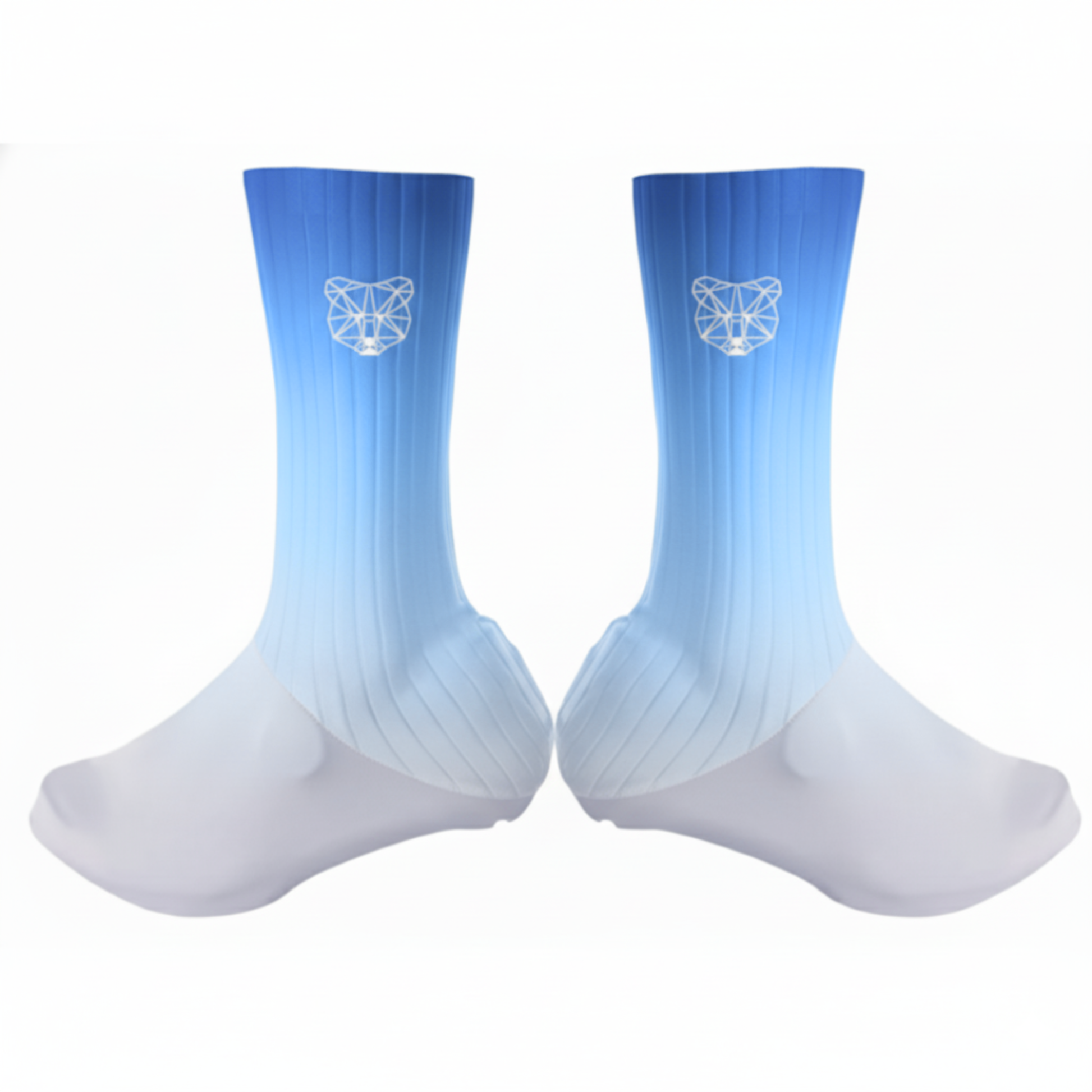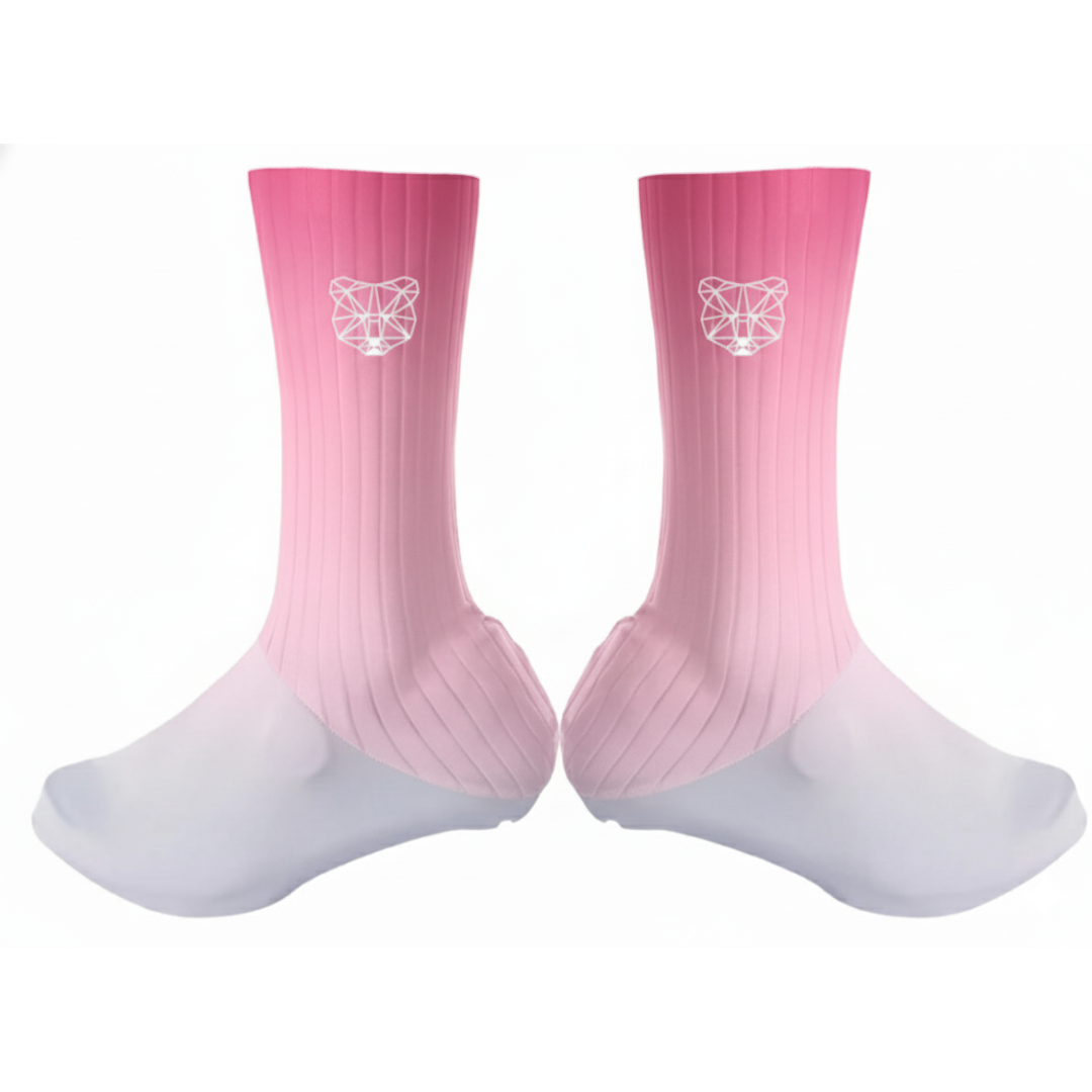Elles utilisent les mêmes matériaux que nos chaussettes, notamment le Lycra, qui est extensible et ajusté pour s'adapter parfaitement à la forme de votre pied et de votre chaussure. Cette conception permet de créer une transition fluide et profilée, réduisant ainsi la résistance de l'air.